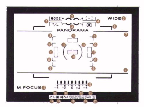 The Dynax 9xi's bright Advanced Graphic Display Viewfinder is one of those rare design concepts that transcend existing technical limits. It displays all the information you need to monitor camera settings, right before your eyes, including the focus and exposure modes currently selected as well as focus and metering areas. In addition this display superimposes only the relevant camera control information over the viewfinder image, so you can quickly adjust camera settings using the front and rear control dials without taking your eye away from the viewfinder.